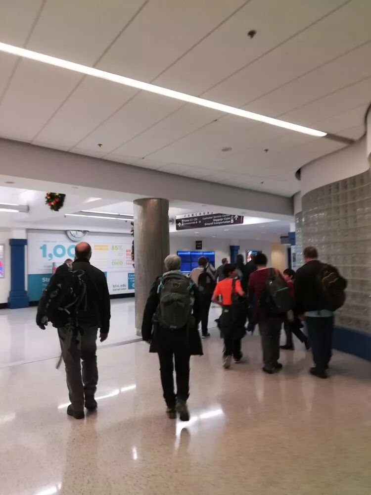 进来后,票上没有登机口,去问了服务人员,他说了半天我也不明白。然后他就领着我到了大屏前面,我知道了,上面可以查到Ohio,看到了我的航班号,后面是cleveland。剩下的是等待,还有5个小时。