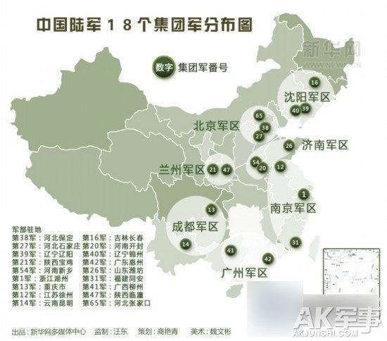沈阳军区:司令员刘精松,政治委员刘振华,辖辽宁省军区、吉林省军区、黑龙江省军区,王克、梁光烈、钱国梁先后任司令员,宋克达、姜福堂先后任政治委员。
