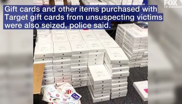 犯罪分子利用IRS礼卡电话诈骗,从受害人处获得礼卡,并将卡号交给快递员,让他们迅速用这些礼卡购买苹果产品。