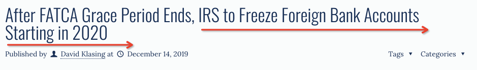 从2019年12月31日开始,美国国税局IRS,将最终结束其长期运行的《海外账户纳税法案》(FATCA“肥咖”条款)宽限期。宽限期一旦结束,只要你账户符合“美国人身份”(后文有详细解读),就必须提供美国税号(TIN),海外账户被查出没有申报,除了会面临高额罚款外,账户会被美国国税局冻结,甚至面临刑事处罚!