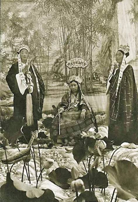 ▲ 慈禧扮观音,右立扮韦陀者为李莲英。清末民初文人刘禺生《世载堂杂忆》则讲述了这张照片是PS的故事
