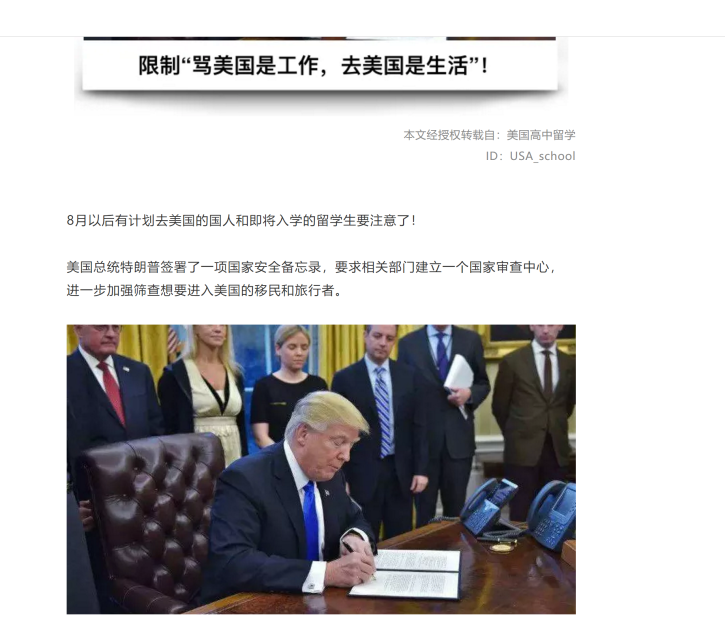 近几天有些媒体——包括在海外华人朋友圈里比较有影响的微信公号,接连发布这样一条内容为“特朗普成立国家审查中心,骂美国将被拒绝入境”的新闻。
