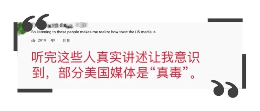 这段海外自媒体制作的街采也在网上引发热议。不少海外网友表示,通过这些美国人口中的讲述,才明白某些西方媒体对中国的抹黑有多严重。“听完这些人的真实讲述让我意识到,部分美国媒体是‘真毒’啊。”