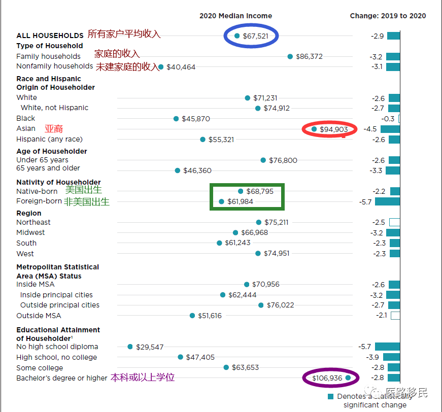 (美国最新的家庭年收入(2020年)。来源:美国人口普查局的最新报告)