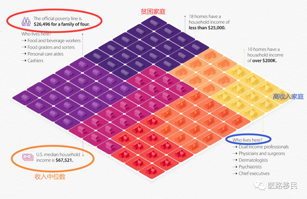 参考文献:https://www.visualcapitalist.com/us-household-income-distribution-visualized-100-homes/