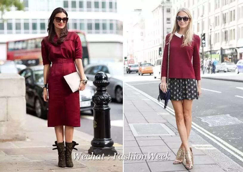 褐红色跟姨妈红差不多,你可以说是红棕色,褐红色,栗红色等。与勃艮第红是近几季关键的珠宝色调,呈现更为偏棕的红色影调。高大上的褐红色是自信大气的职场熟女着装、头发造型常备颜色之一。