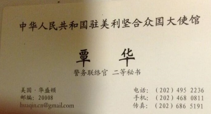 4. 王雪臻为何能够拥有中国驻美领馆二秘外加警务联络官覃华的名片?王雪臻又是如何知道是这位覃华向美国警方举报她是恐怖分子?最大的可能是覃华是这个裸奔截车行动计划的队员之一。
