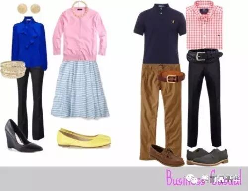 男士: 比较讲究一点的便装,像西装上衣配休闲裤,衬衣休闲西裤等。