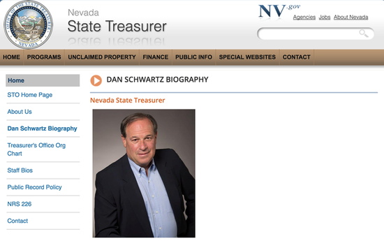 施瓦泽于2015年出任内华达州财政部长。他拥有哥伦比亚大学的MBA学位,在银行和证券业从业超过35年,并有25年的创业经验,创办了Qiosk.com等数家公司。此外,他还曾担任知名风投期刊《亚洲创投期刊》(Asian Venture Capital Journal)的CEO,对亚洲私募股权和风险投资状况拥有深入了解。需要强调的是,州财政部长属于民选官员,并不是由州长任命。