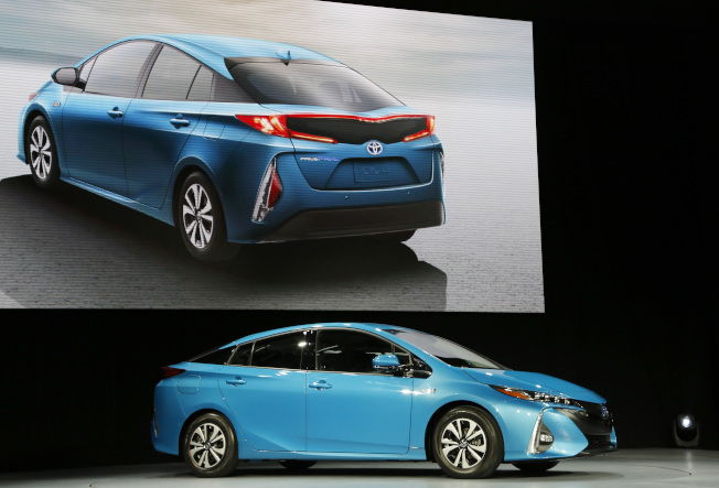 豐田的Prius在電動車中居冠。圖為豐田Prius2017年車型。(美聯社)