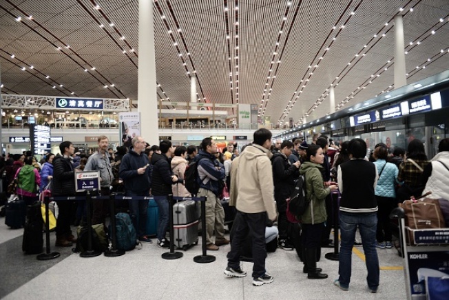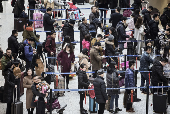 上海虹桥机场每逢长假,都是长队的旅客。(Getty Images)
