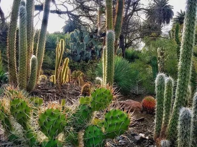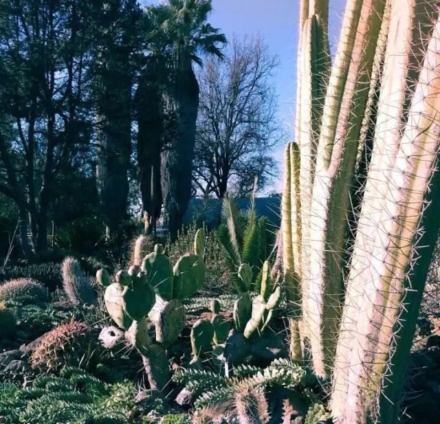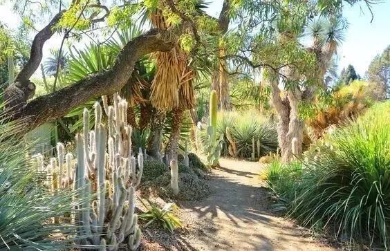 在这片3.5英亩的花园里, 种植了2000多种大小不一, 形态各异的仙人掌,多肉,棕榈树等 沙漠植物。
