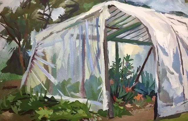 有时候遇到天气变化, 她也会提前防御, 为这些植物们搭上防护设施。
