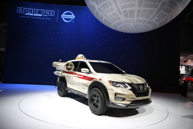 各厂商也推出丰富多彩的体验活动,日产打出“星战主题”,在展位上方悬挂星战中著名的“死亡之星”(Death Star)充气模型,还现场提供VR体验,让星战粉丝感受日产车系同星战电影结合的快感,而一辆基于星战X-Wing战机飞行员制服为灵感所定制的Rogue休旅车也亮相车展,吸引观众眼球。越野品牌Jeep则和往年一样,在展厅外场搭起体验场,模拟桥梁、上坡、洼地等,让观众亲自登上“Jeep”引以为豪的切诺基等系列新款车型,体验越野车老大各车系“跋山涉水”的卓越功能。