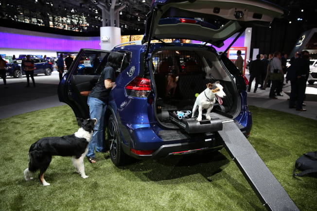 厂商各出奇招,以各类体验吸引观众,狗狗也上场。(记者洪群超/摄影)