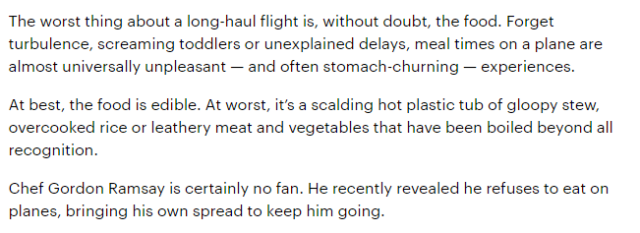 每日邮报这一次,揭露了一个可怕的事实:长途飞行最可怕的,不是误机,不是突然的气流波动,不是一直哭的孩子,而是飞机餐 !!