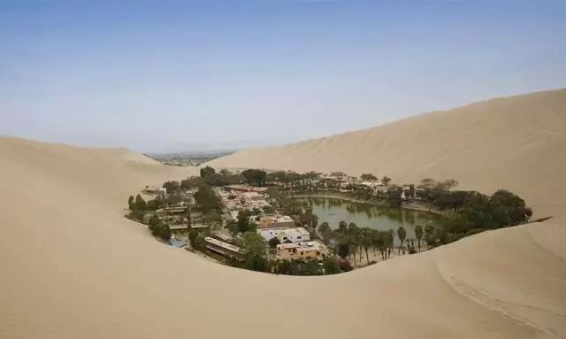 瓦卡齐纳村。位于南美洲阿塔卡玛沙漠。村子围绕湖泊而建,湖泊也是村子唯一水源。麻雀虽小五脏俱全,全村只有100多人,却有商店、健身房、超市、图书馆、学校、医院......
