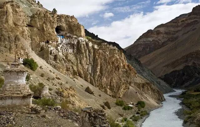 印度Phugtal Monastery 寺庙。这座寺庙建在悬崖绝壁上,寺庙周围有十几户人家,村子下面是一条河,村里人每天从河里提水上去。虽然生活艰难,却没人愿意搬离这里。