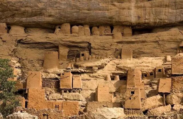 邦贾加拉悬崖。位于马里共和国的邦贾拉山地,这个村子在非洲很有名气,主要有两个特色:一,建在悬崖上;二,房子用泥巴做成。