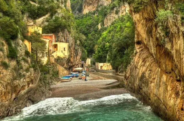 意大利福罗瑞村。这个村庄建在峡湾口,只有一条小路通进去,虽然村子不大,却是意大利著名旅游景点。来到这里,你才知道什么是世外桃源。