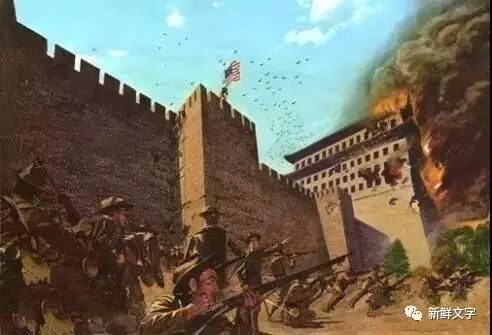 美国人当年绘制的油画,表现美军第十四步兵团的悠闲连队(Easy Company)正在于1900年8月14日攻打北京东便门。