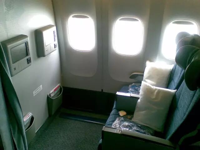 选择紧急逃生口那一行的过道座位(Exit Row),这一行座位会比其他行要更宽阔,坐过道座位上还可以在没人的时候将腿脚伸到过道上。