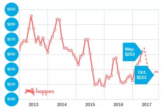 圣诞日期:2017年12月25日,星期一 什么时候买:出发前85天 什么时候价格暴涨:出发前20天