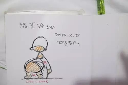 (这张可爱的签名画是修一的招牌画。意思是,从年轻到老,他都站在妻子英子的背后。“英子想做什么,我就支持她”)