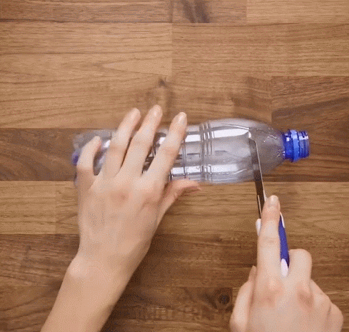 首先,将一只塑料瓶的瓶底座部分剪下。