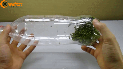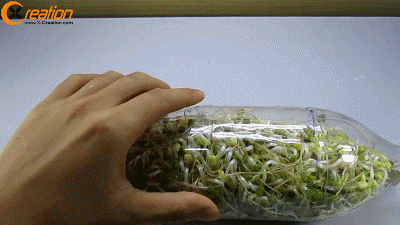 等到豆芽已经长满整个瓶身,就用剪刀剪开塑料瓶,取出鲜嫩的豆芽,就可以享受自己亲手培植的美食啦。