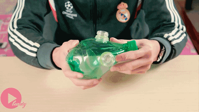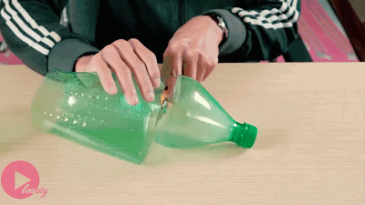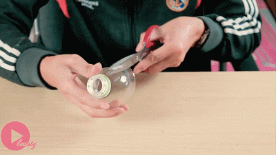 只需将瓶口部位切掉,然后将切口打磨平整,对准加热后的电熨斗,烫上1秒钟,让瓶口受热变形,自然会内收成窄口形状。这样就能用来收纳你的各类化妆工具啦。