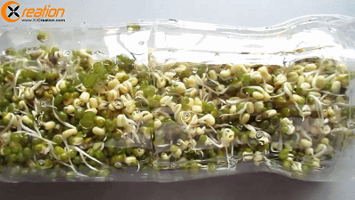 第三天后,打开塑料袋,你就会发现绿豆已经开始萌出嫩芽。