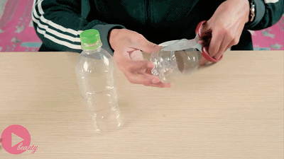 女孩子们的梳妆台,如果不好好收纳整理,一定像灾难现场。喝完果汁、饮料的各种好看塑料瓶,扔了太可惜,随手改造成收纳盒吧
