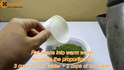 抓一小把绿豆(约100粒左右),清洗干净,摘除坏死的、无法发芽的绿豆。然后用温水浸泡绿豆,泡上半小时左右,使绿豆吸饱水。