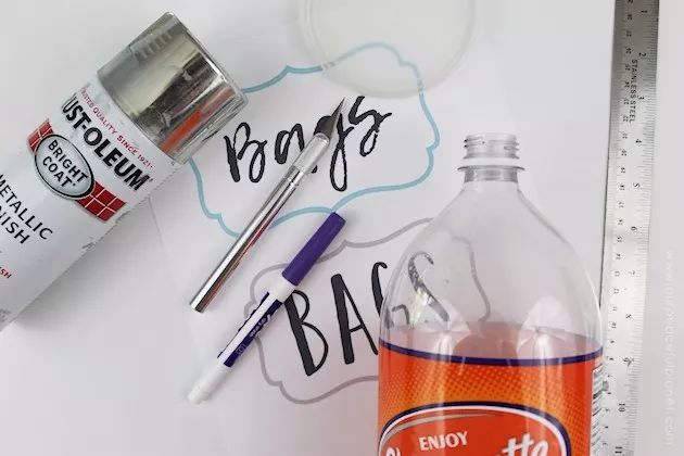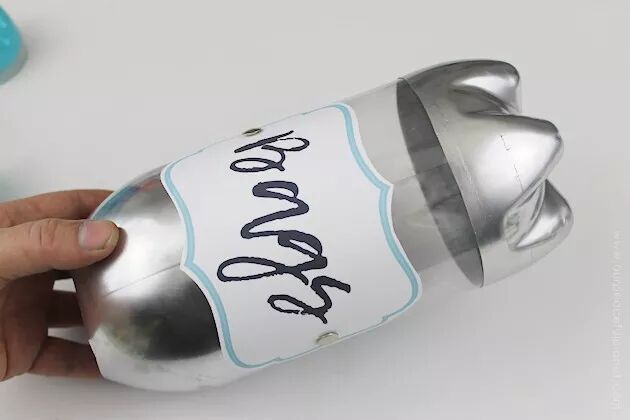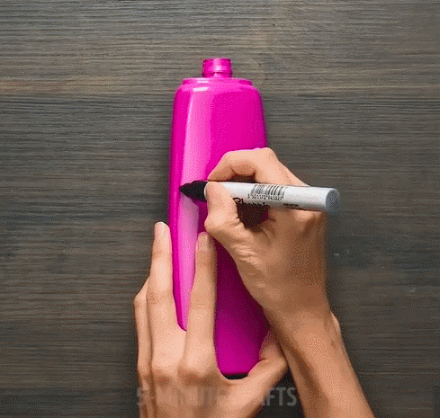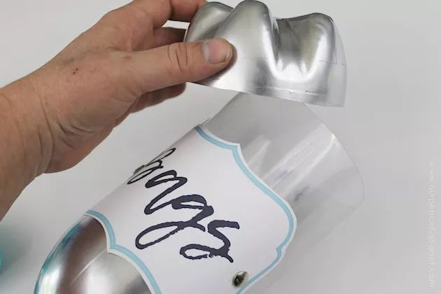 可以用装饰喷漆,喷在瓶底和瓶口部分,做为装饰。还可以在瓶身上贴上标签,标明各类杂物的用途。