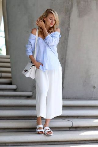白色阔腿裤和衬衫堪称绝配,是office lady们的五分钟出门法则。