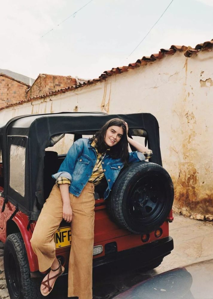 黄格子和蓝色牛仔匹配度相当可以,感觉夏天外套脱掉,换成蓝色牛仔裤或半裙也都很好配;然后裤子是略微秋冬的灯芯绒阔腿裤,换成卡其色或是颜色差不多的棕黄色阔腿裤or半裙应该没问题——同色系搭配,整套看起来是略中性偏工装风的调调: