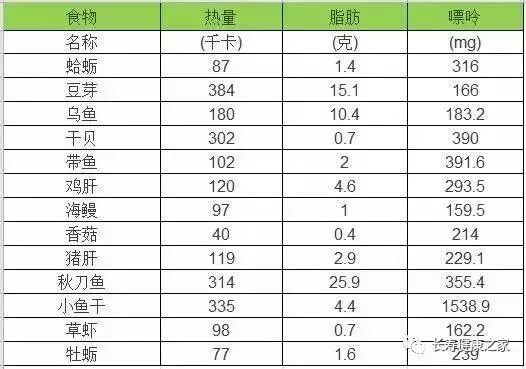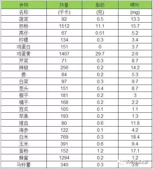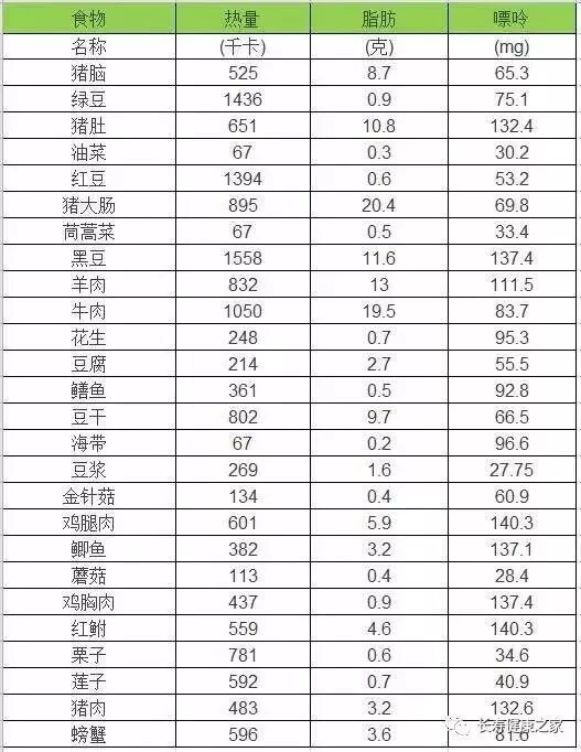 第八张表 食物嘌呤含量表(针对痛风)