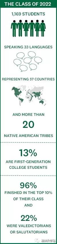 4、2022年的班级中有13%是第一代大学生,13%的新生有校友关系,其中包括一名22岁的达特茅斯第四代学生(这家人有多爱达特茅斯