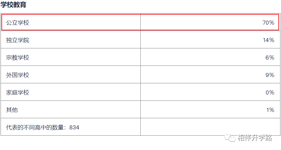 也由此,绝大部分的校友家庭出身新生都出身于学费高昂的私立教育(占比61.1%)。