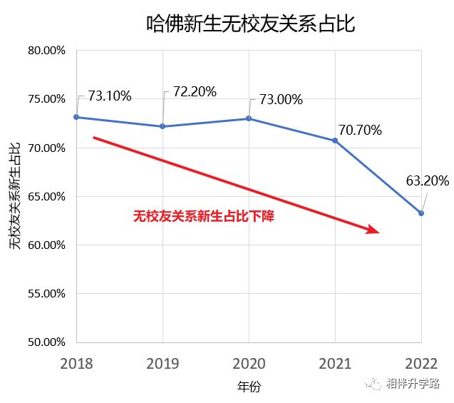 无校友关系的新生占比从2020届开始有下滑趋势,今年更是大幅下滑,那么相应的,有校友关系的新生占比也就有了提高