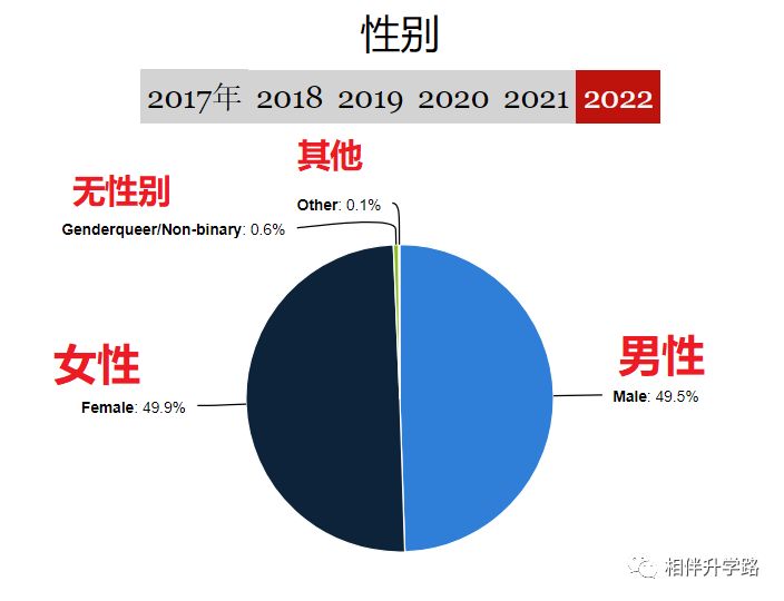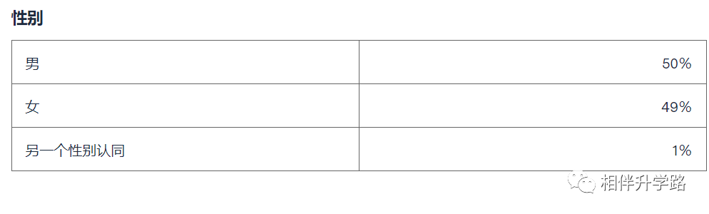 哈佛新生中的女性和男性占比人别为,49.9% : 49.5%达到了1:1 的完美比例。