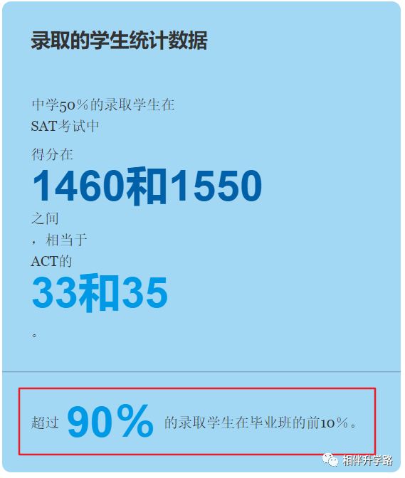 极低的录取率带来的是学生极高的考试分数和10%的班级排名优势
