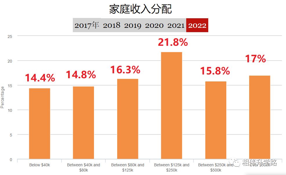 家庭年收入在12.5-25.5W美金的学生,占比达到了21.8%