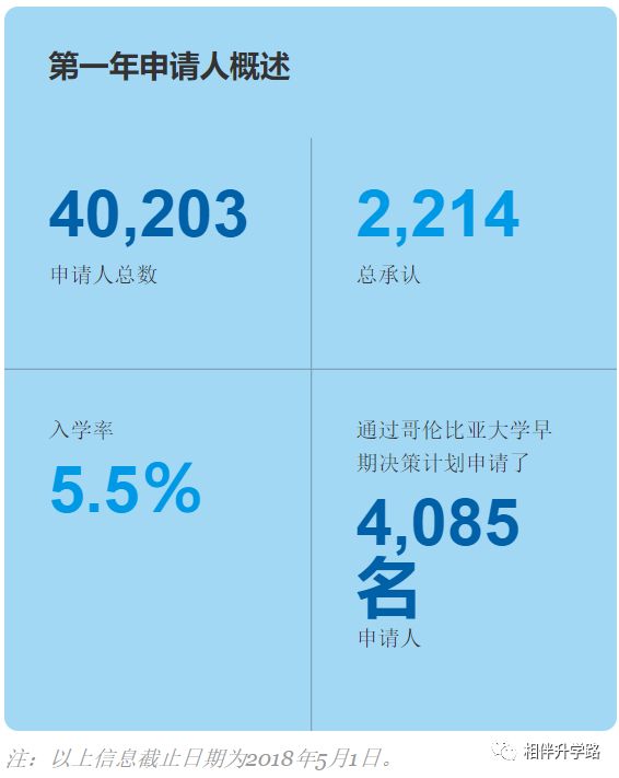 哥大今年首先公布了自己的录取情况:整体录取率5.5%。