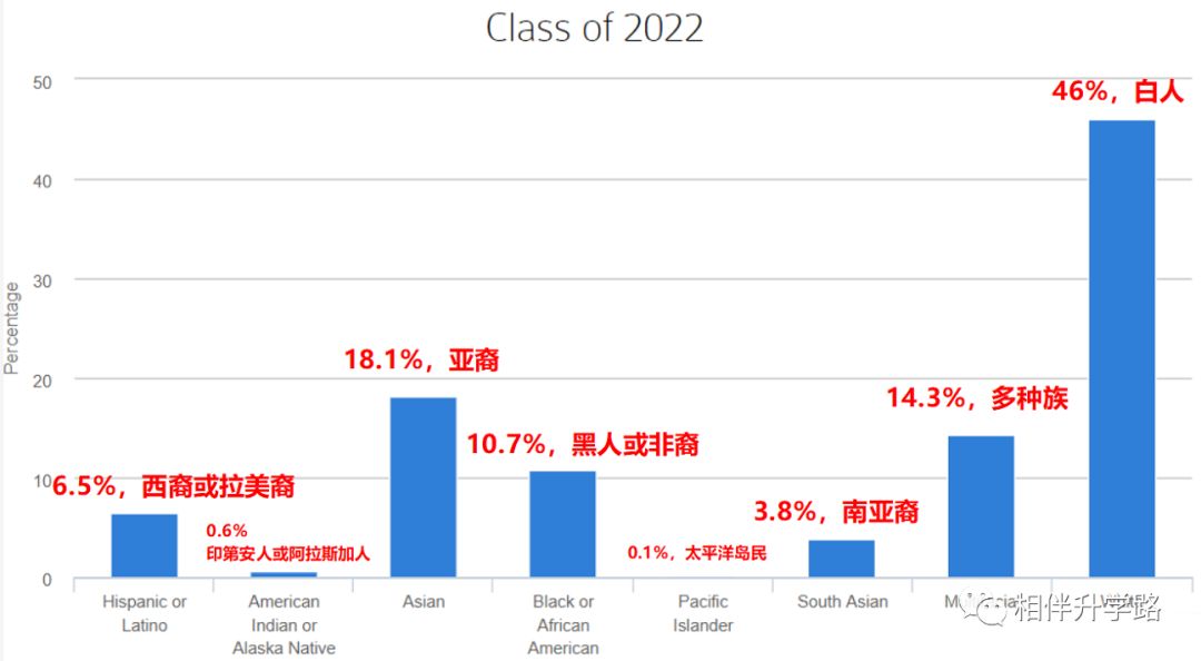 其中,我们也注意到亚裔已经占哈佛学生的第二名,占比为:18.1%。