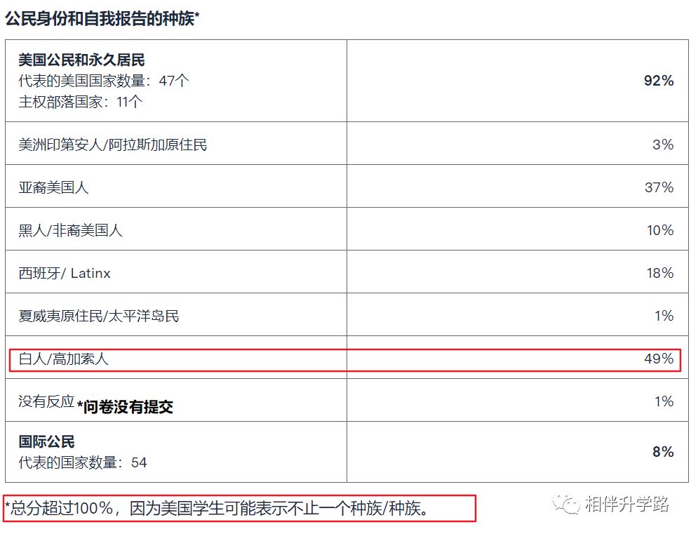 白人占比最高,达到了49%,不过也没有过半。其次是亚裔,有37%的占比。