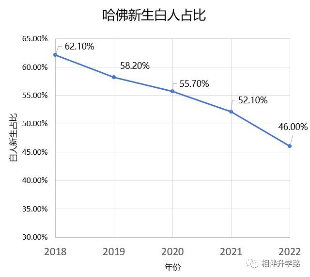 新种族的统计,白人占比的下降,哈佛学生更加趋于多元化。