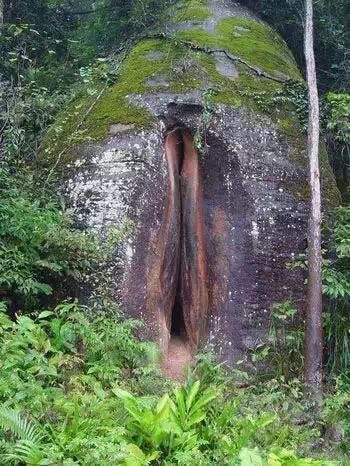 宣汉县百里峡风景区腹地,有一处着名景点叫羞女岩。羞女岩其实就是山峰中间的一个大裂缝,这个裂缝就形成了一个岩洞,和女阴相比,既是形似,更是神似。