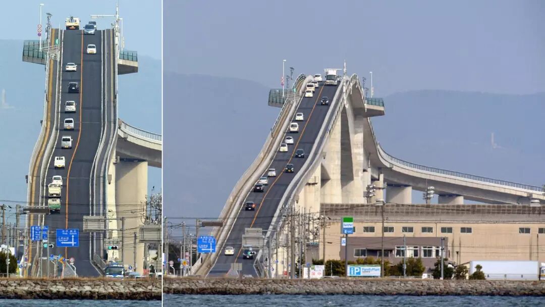 如果你去過日本這座 Eshima Ohashi 橋上駕車,你會感覺就像乘坐過山車一樣。 雖然它看起來只有6.1%的梯度和144英尺高的可怕陡峭,但它確實看起來很嚇人。